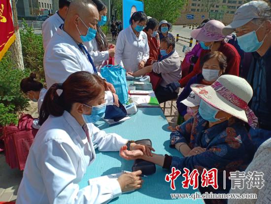 图为居民在西宁市城中区新时代文明实践点享受医疗服务。钟欣摄